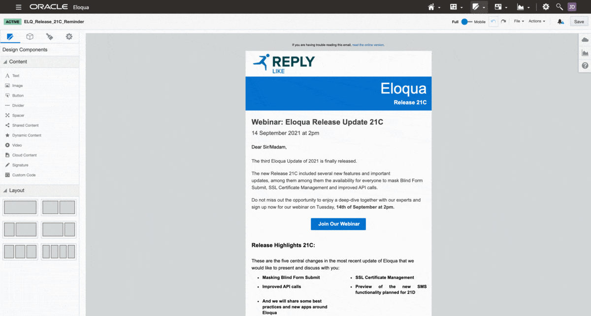 ✔ A new, translated asset is automatically created in Eloqua
